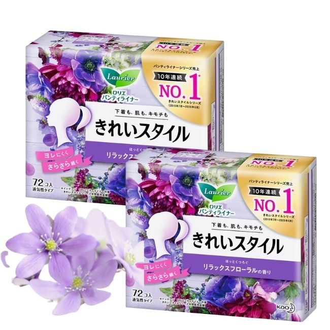 Băng vệ sinh Kao Laurie hàng ngày 72 miếng (5 mùi hương) (Cam - Hoa quả) (Tím - Hương hoa)