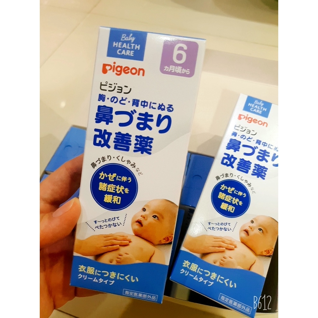 ・Kem bôi ấm ngực Pigeon cho bé làm giảm các triệu chứng liên quan đến cảm lạnh như nghẹt mũi và hắt hơi bằng cách massage lên ngực.