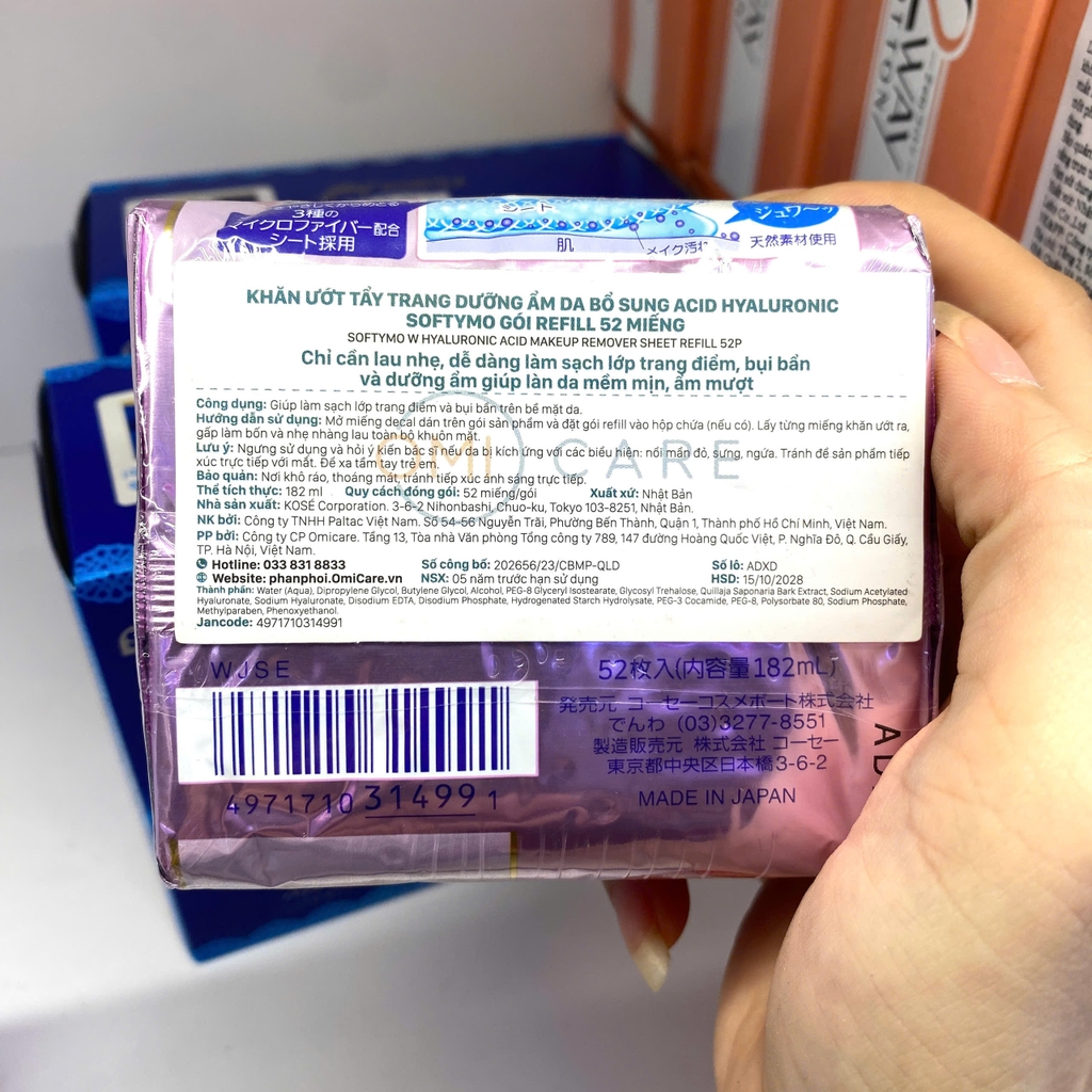 KHĂN ƯỚT TẨY TRANG DƯỠNG ẨM DA BỔ SUNG ACID HYALURONIC SOFTYMO GÓI REFILL 52 MIẾNG