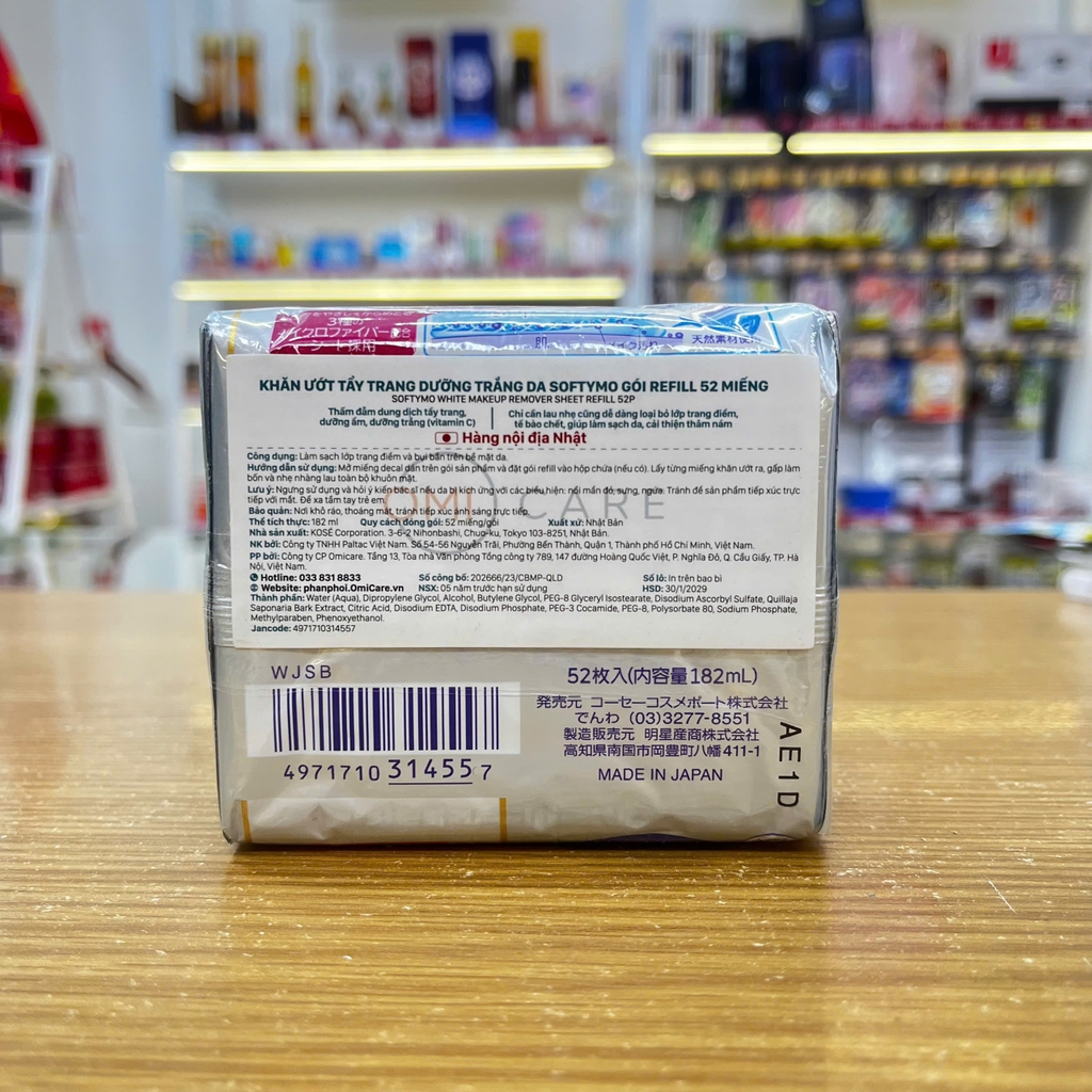 KHĂN ƯỚT TẨY TRANG DƯỠNG TRẮNG DA SOFTYMO GÓI REFILL 52 MIẾNG