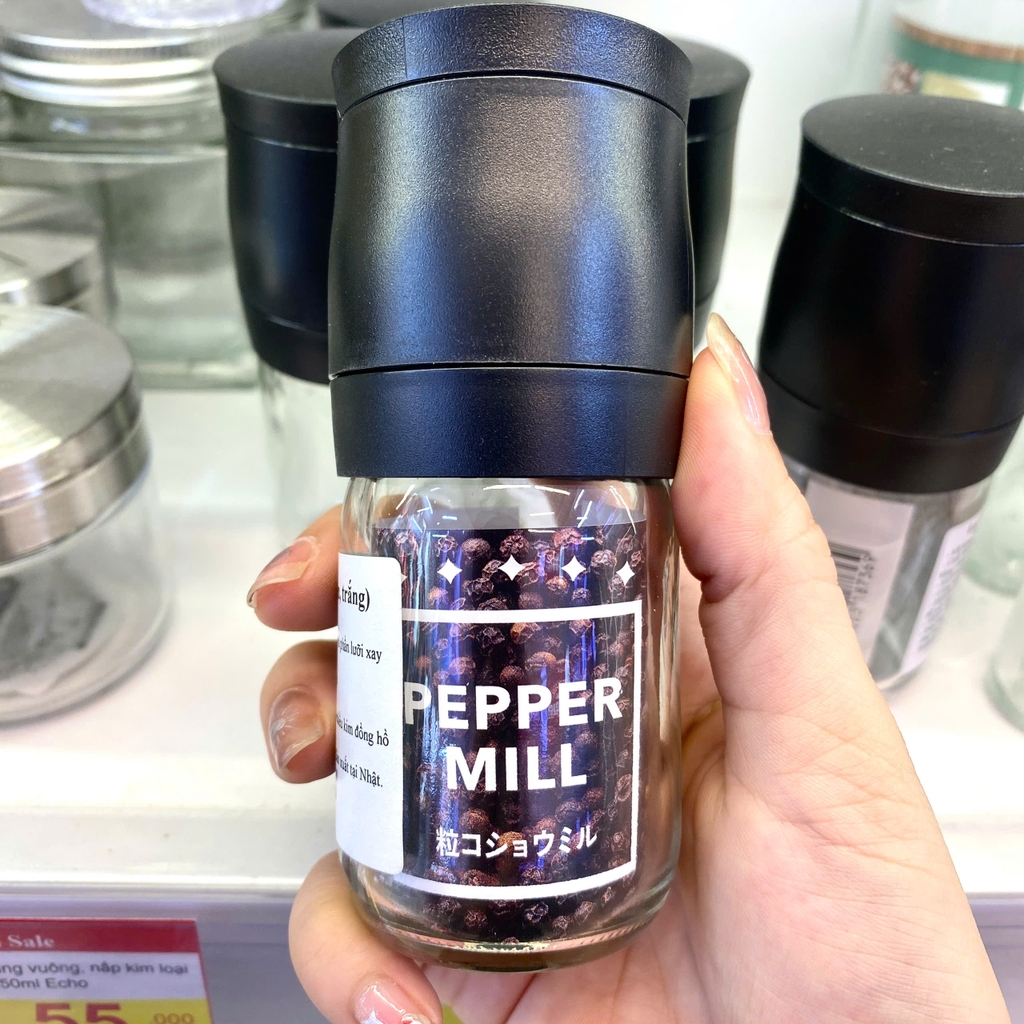 Lọ xay tiêu thủy tinh (nắp đen, trắng)