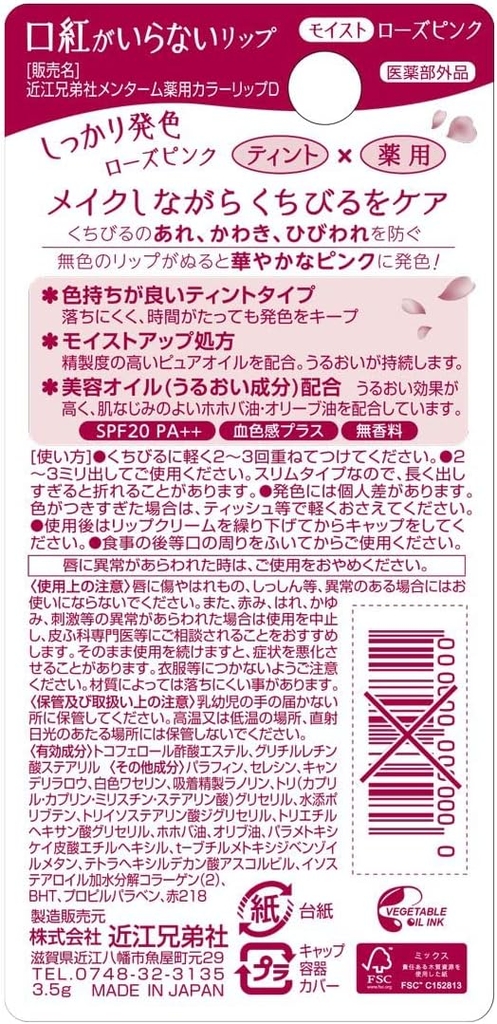 Son dưỡng môi màu hồng đỏ Omi Menturm Kuchibeniga Iranai là dòng son dưỡng môi có màu nổi tiếng bán chạy tại Nhật Bản với đa công dụng (trang điểm, chăm sóc môi và chống nắng) trong suốt 25 năm