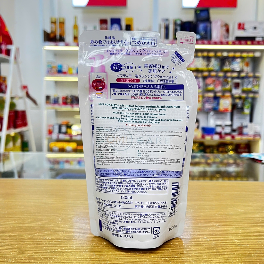 SỮA RỬA MẶT & TẨY TRANG TẠO BỌT DƯỠNG ẨM BỔ SUNG ACID HYALURONIC SOFTYMO TÚI REFILL 180 ML