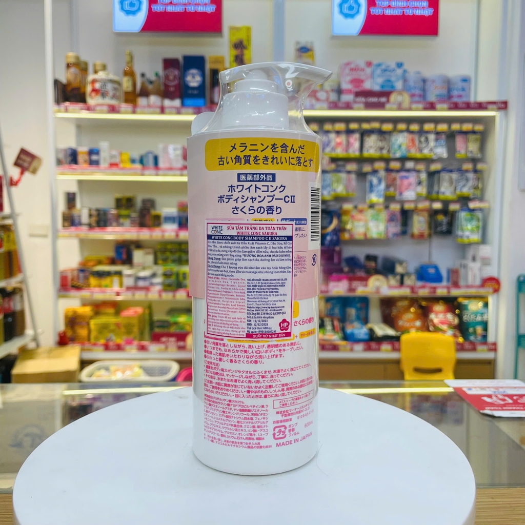 - Sữa tắm trắng da White Conc Body Shampoo chứa nhiều dưỡng chất vitamin C giúp bạn có ngay một làn da sáng mịn an toàn và nhanh chóng. Ngoài tác dụng làm trắng còn giúp tan sắc tố nám da, làm cho da trắng hồng tự nhiên.