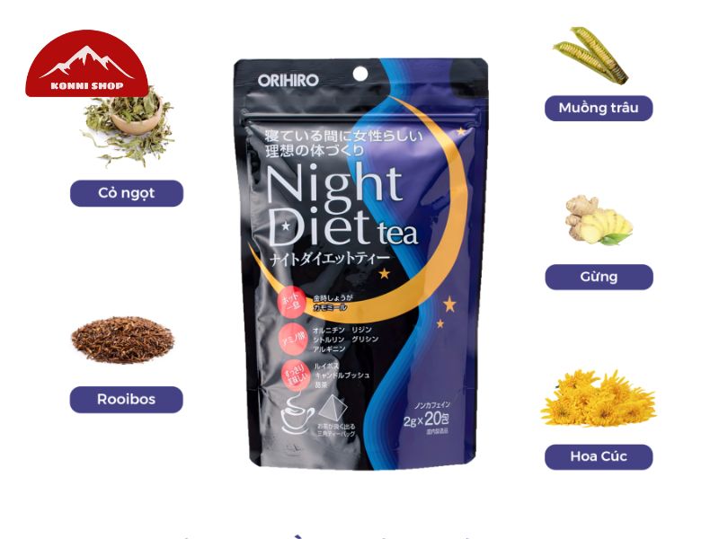 Hiện tại, Trà giảm cân Orihiro Night Diet 24 gói đang được bán với giá 185.000₫/túi tại Konni Shop.
