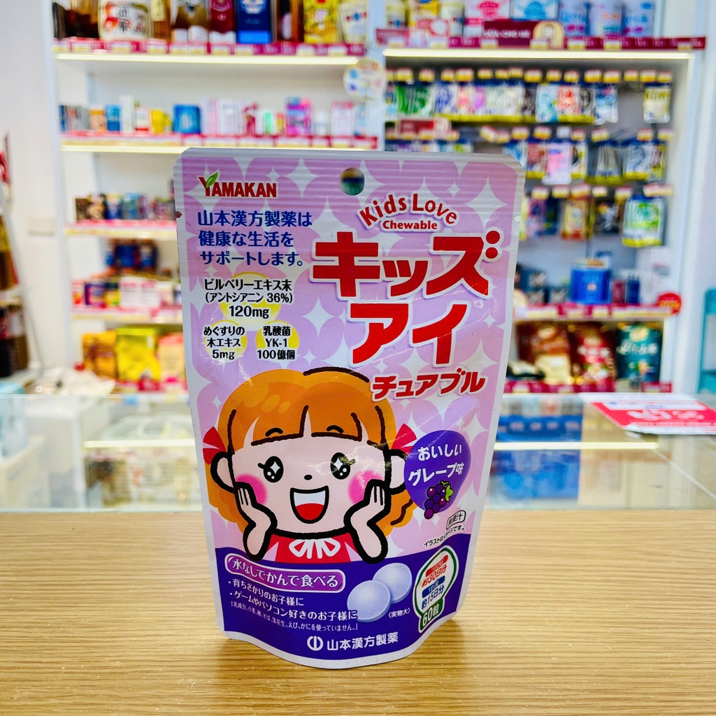 Viên nhai bổ mắt Yamamoto Kids Love Hello Kitty cho bé vị nho 60 viên