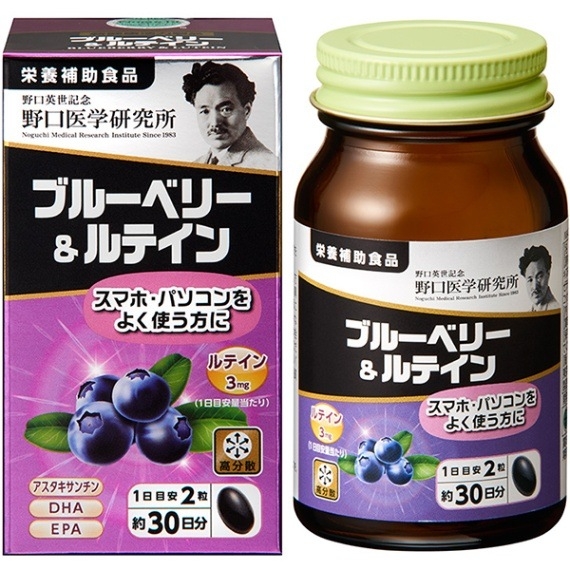 ・Viên uống bổ mắt Việt Quất Noguchi Nhật Bản 60 viên với chiết xuất 100% từ trái việt quất đến từ vùng hoang dã Bắc Âu, được kết hợp với các thành phần quan trọng cho mắt như Lutein, Vitamin A giúp khôi phục và duy trì sức khỏe cũng như chức năng cho đôi mắt. Lutein vừa cung cấp dưỡng chất cho mắt, vừa có vai trò chống oxy hóa, lọc tia tử ngoại bảo vệ mắt.