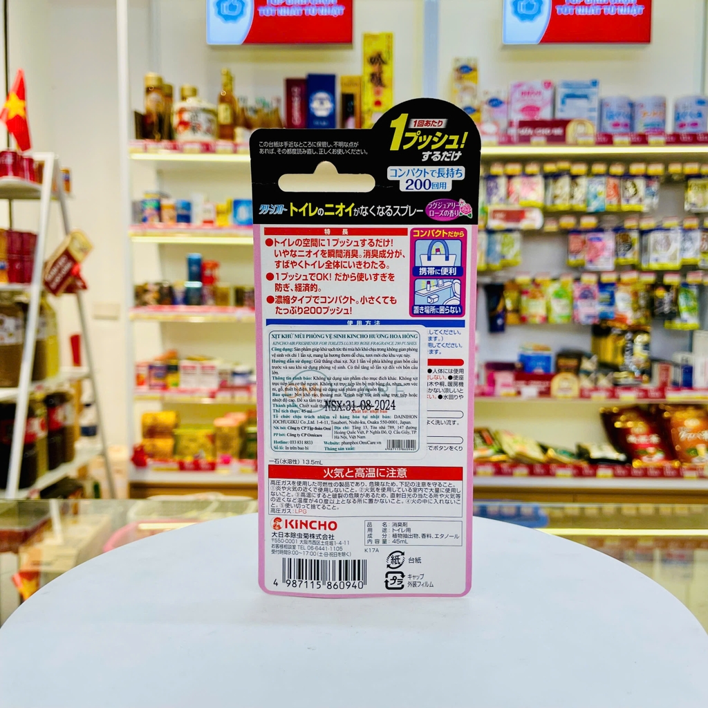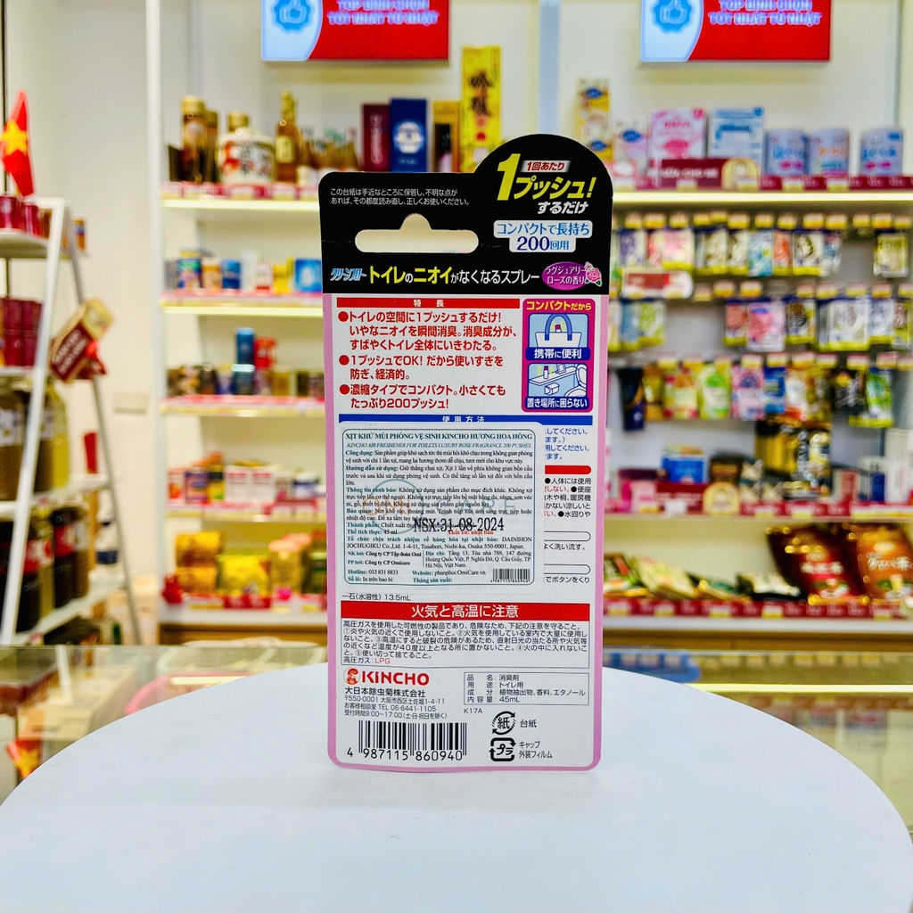 Xịt khử mùi phòng vệ sinh Kincho (Hương hoa hồng) giúp khử sạch tức thì mùi hôi khó chịu trong không gian phòng vệ sinh với chỉ 1 lần xịt, mang lại hương thơm dễ chịu, tươi mới cho khu vực này.